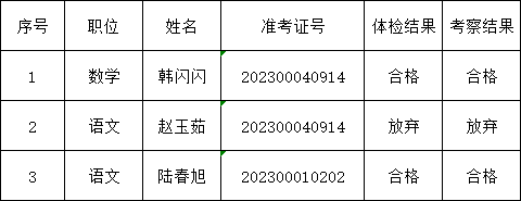 根據(jù)《2023年安徽亳州機(jī)電信息工程學(xué)校非在編教師公開招聘》有關(guān)規(guī)定,現(xiàn)將2023年安徽亳州機(jī)電信息工程學(xué)校非在編教師公開招聘遞補(bǔ)人員擬錄用公示。