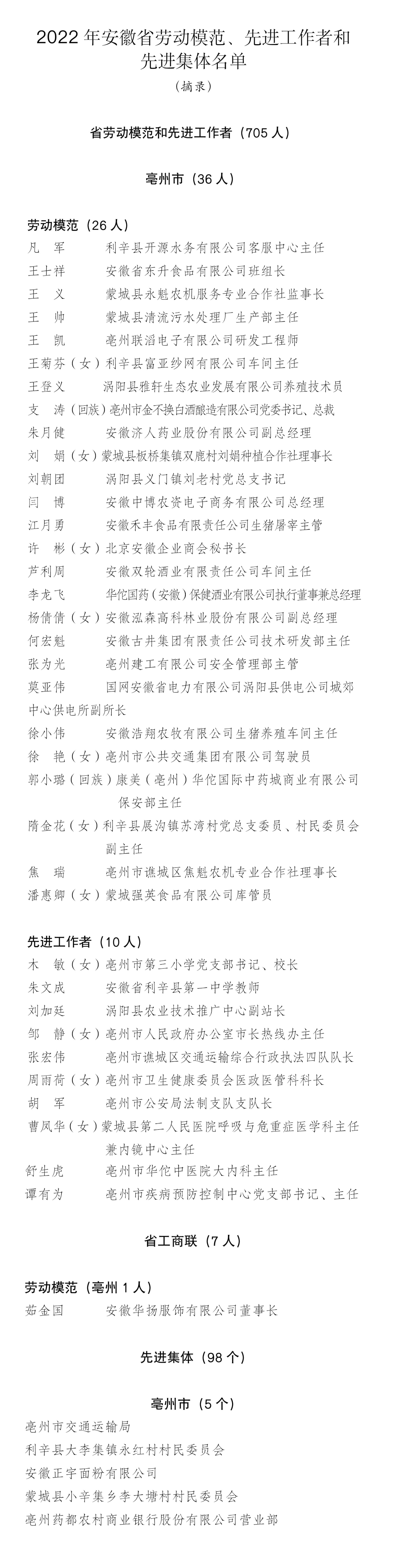 亳州市交通運輸局等5集體